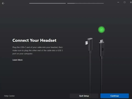 一旦你具备了在PC上使用Oculus Quest 2的前提条件,你就可以开始执行剩下的步骤。如果你想使用USB电缆将设备连接到你的PC,你需要按照以下步骤操作。请注意,如果你选择此方法,你需要始终通过电缆将设备连接到你的PC才能使用它。