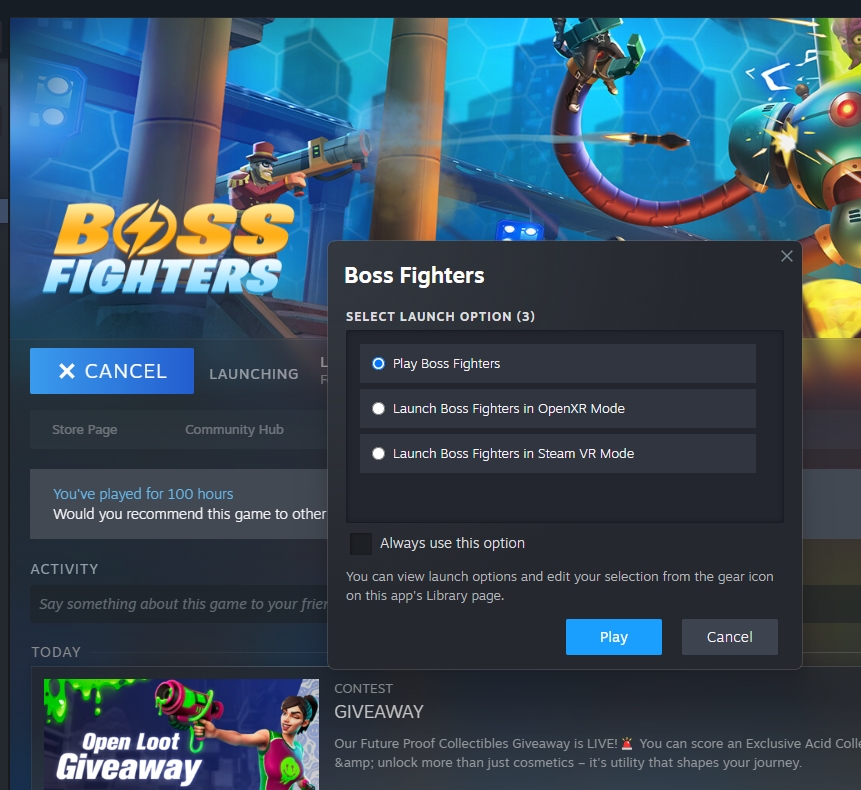 在你的Steam库中右键单击BOSS FIGHTERS,然后选择属性。