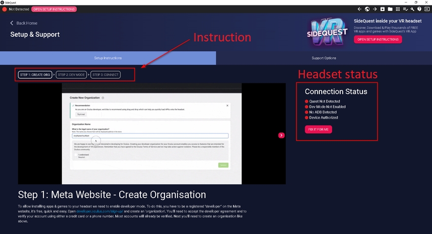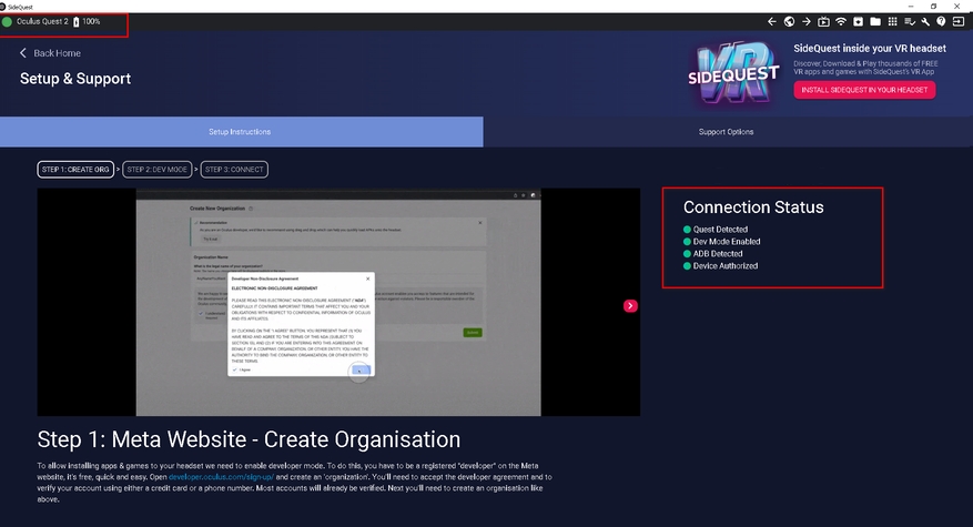 7、登录到Oculus APK,选择你的头显,并启用开发者模式。
